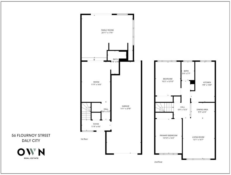 Welcome to 56 Flournoy Street, a versatile multi-level home offering flexible living spaces and abundant natural light in a convenient Daly City location. Ideal for multi-generational living, guest quarters, or work-from-home needs, this home provides adaptable spaces to fit a variety of lifestyles. The lower level features an expansive bedroom suite with an additional area that can serve as a living room, family room, office, or extra sleeping space. Large windows and a sliding glass door bring in natural light and provide direct backyard access. A full bathroom and attached two-car garage complete this level. Upstairs, the bright living room is highlighted by a large picture window. The kitchen offers warm wood cabinetry and space for a dining table or breakfast nook. Two additional bedrooms with closet space are served by a full hallway bathroom. Hardwood floors run throughout the home, adding a timeless touch. Located within walking distance to Daly City BART and close to shopping, dining, and major commute routes, this home combines flexibility, comfort, and convenience in a prime location.