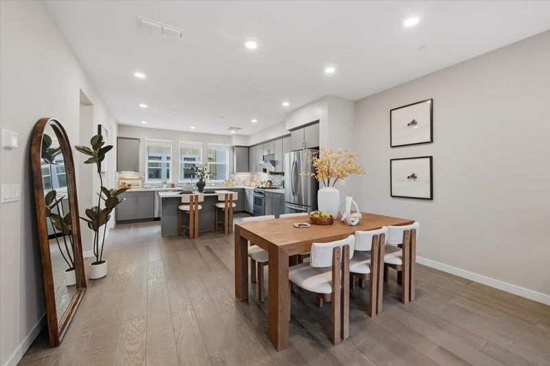 Welcome to this modern three-story townhouse, situated in the desirable Vale community. Built in 2018, this exceptional home offers 3 bedrooms, a den, 2 full baths, and 2 half baths. The 1st floor features a den and a half bath, ideal for an office or fitness area. The main floor impresses with a bright, open-concept living space. The gourmet kitchen features sleek quartz countertops, SS appliances, a spacious island, a walk-in pantry, and an adjacent half bath. Step onto the expansive balcony to enjoy fresh air. The top floor boasts a primary suite with soaring 11 ft ceilings, a walk-in closet, and a bathroom with dual sinks. Two additional bedrooms share a full bathroom with a soaking tub. Additional highlights include high-end laminate flooring, smart home features, a EV wall charger, multi-zone A/C, a tankless water heater, and a two-car side-by-side garage. The community offers playgrounds, a clubhouse, and low HOA fees. This prime location offers excellent connectivity with major highways, and Caltrain, providing an easy commute to major tech employers such as Meta, Apple, and Google. Walking distance to nearby parks including Magical Bridge and Wiser Park. Close to grocery stores, restaurants, and shopping centers. Don't miss the opportunity to make this home yours!