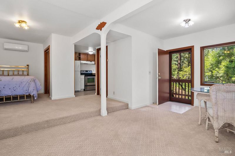 Step into this light-filled oasis where large windows frame the lush, wooded beauty of the surrounding hills and forests. A generous and flat paved driveway welcomes you into this charming home, offering an ease of access seldom found along these whimsical forest curves. Mature and thoughtful landscaping hints at the care and meticulous nature that the current owners have lovingly bestowed upon this home over several decades. That pride in ownership carries forth to the main home which ensures a turn-key experience for the next inhabitant. Whether you're looking to unwind every evening or escape the city on the weekends, this A-frame open concept home is a cozy dream with everything you need. Sliding doors lead from the bedroom onto one of the two sunny decks. You're both in the forest and above it, offering the best of both worlds. Below the one bedroom one bath main home, is a studio suite allowing for flexible use-cases. You'll discover Woodacre is more than just a location, it's a community known for its deep connection to the land. You can enjoy this by hiking right outside your doorstep, with direct access to some of Marin's most storied trails, including Roy's Redwoods and the Spirit Rock trail systems. With more horse traffic than car traffic, you'll enjoy the West Marin feel without the isolation given the quick access to Sir Francis Drake Blvd.