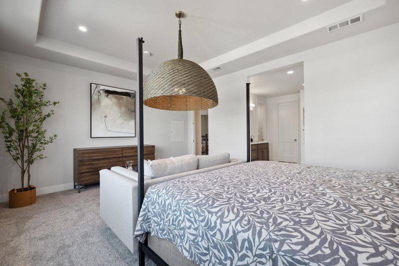 This stunning 5-bedroom, 4-bathroom home offering an impressive 2,818 square feet of beautifully designed living space.Upon entry,you'll immediately find the main floor bedroom complete with a walk-in closet, full bath with a walk-in shower.As you continue through the main level, you’ll find theformal dining room and staircase to the second floor. Just beyond is the cozy family room, complete with a gas fireplace and direct access to the covered backyard patio, perfect for relaxing or entertaining outdoors.On the opposite side of the home, the gourmet kitchen awaits, offering a center island, generous pantry, single basin sink, and a full stainless steel appliance package.Upstairs, a spacious loft provides the perfect space for a game room, or home office. The second and third bedrooms share a full bathroom with dual vanity, tub, and shower. The fourth bedroom features a full en-suite bathroom, and the laundry room is conveniently located upstairs with a nearby linen closet.At the end of the hall, retreat to your own private oasis in the primary suite, which boasts a luxurious spa-inspired bathroom with soaking tub, solid surface walk-in shower, dual vanity, and oversized walk-in closet. This home includes multi-zone HVAC, solar energy system, prewired electric charging stations