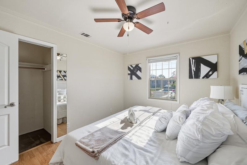 Perfect for multi-generation living! This 3 bed/3 bath single-family home in the desirable San Lorenzo Village offers plenty of space and flexibility.The front portion features 2 bedrooms, 1 bathroom, a spacious living and dining room, and an open kitchen. Step through the connecting door to discover the back portion with a wet bar and breakfast area, a cozy family room, a private bedroom suite, plus 2 bonus rooms for office, hobby, or guest use. The backyard includes a sturdy enclosed shedideal for storage or a home officealong with a decent-sized yard for gatherings or gardening. Additional highlights include hardwood flooring throughout and a one-car garage. Dont miss this unique opportunity to make it your own!