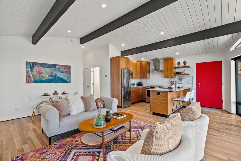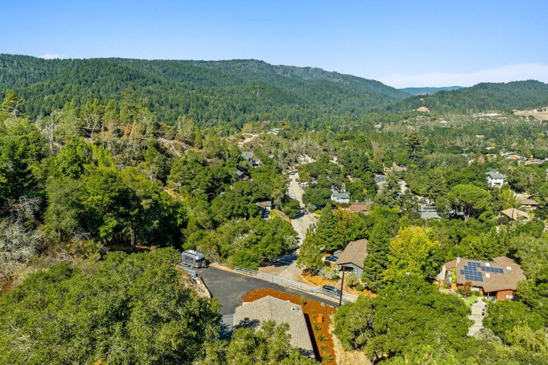 Perched on a serene hilltop in Quail Hollow, this home isn't just remodeled - it is reimagined as a sanctuary in the sky balancing mid-modern elegance with the raw beauty of the Santa Cruz mountains. The open concept floor plan with vaulted ceilings and exposed beams highlights the breathtaking views with floor to ceiling windows while also providing natural light. Outside, the landscaped patio area with a built in concrete gas fireplace provides a seamless indoor-outdoor flow. Ample parking, EV ready, RV parking with full hookups, and extensive retaining new retaining wall work in place. Inside, special features abound: wide plank white oak floors, quartz kitchen counters, walnut cabinets, Malm 34" Zircon freestanding fireplace, Saltless water softener and filtration, and trimless base walls. Come enjoy the view!