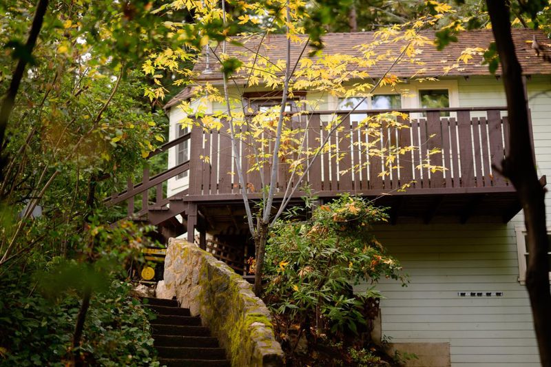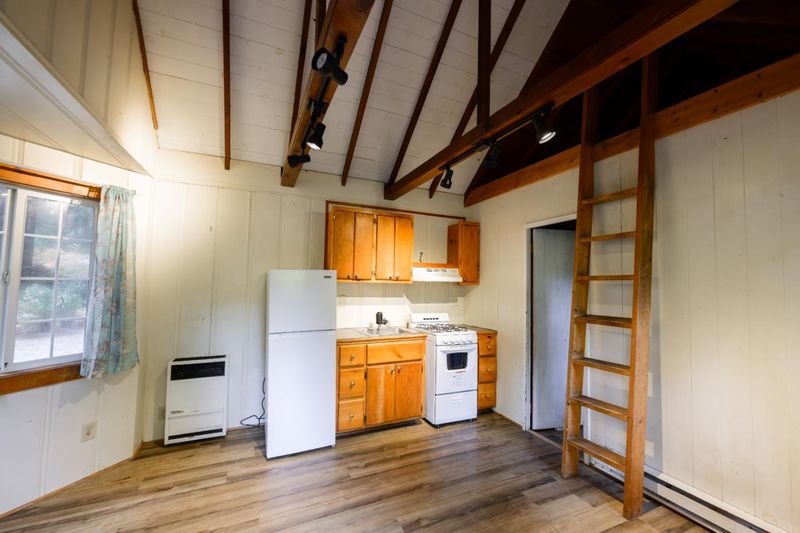 Escape to this enchanting cabin nestled amongst the redwoods. This cozy hideaway is perfect for those seeking tranquility, offering a serene connection with nature. The home boasts a flexible floorplan that has two separate living spaces, each with their own private access. The primary living area features an open concept living/dining/kitchen plus a sleeping loft and cute bedroom suite with 3/4 bath. Features include a bay window, open beam vaulted ceiling and newer luxury vinyl plank flooring. On the bottom level you'll find another cozy bedroom suite, also with 3/4 bath. Meander on down the vintage stone pathway through the redwoods to discover another hidden treasure: a sweet artist studio tucked into the forest at the back of the property. It's the perfect spot for yoga, hobby making or relaxing with a good book! The outdoor living is truly sublime. This beautiful, private lot has a sunny deck which provides a great BBQ spot and the terraced parcel offers level areas for gardening or outdoor play! Located just minutes off of Hwy 9 with easy access and only 4 miles to town and 30 minutes to Silicon Valley. Whether you're seeking a quiet weekend away or an extended stay, this cabin offers an ideal combination of rustic charm and modern comforts. Start making memories today!