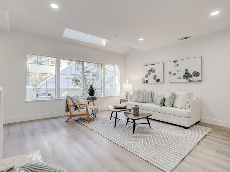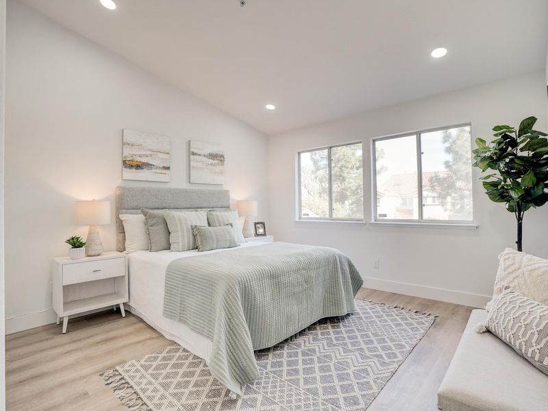 Welcome to this spacious remodeled town home in north valley ! Two spacious beds room suites ! Gated entrance to the private patio. Beautiful laminate flooring throughout, freshly painted, large living room with fireplace/skylight/vaulted high ceiling, full kitchen remodeled with new shaker cabinets, quartz counter top and new range oven/vent fan. all bath rooms are remodeled with everything new, powder room is on main level for convenience. Two very spacious bed room suites upstairs offering vaulted ceilings. The primary bedroom offers a large walk in closet and with a ton of space & an extra loft space for an office/ retreat/ nursing / hobbies . attached one car garage . assigned one car space in community. Lower HOA fee, greatly maintained, this North valley home offers lush landscaping, great amenities. Enjoy your pool, hot tub spa, basketball court, BBQ area,. Centrally located, minutes away from 101, 880, H Mart, 99 Ranch Market, Sprouts Market, restaurants, a golf course, easy commute to major tech companies. Amazing home in a quiet & convenient neighborhood ! Must see to appreciate !