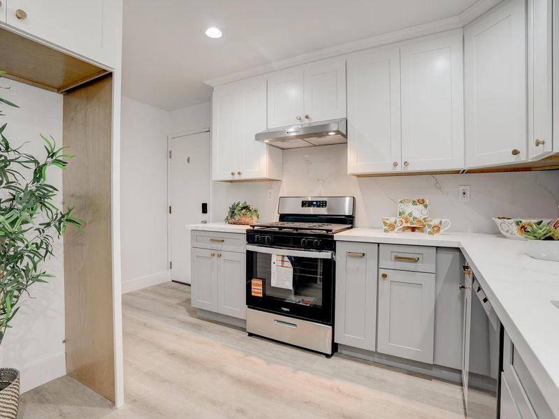 - Cooktop - Gas, Countertop - Quartz, Dishwasher, Exhaust Fan, Oven Range - Electric