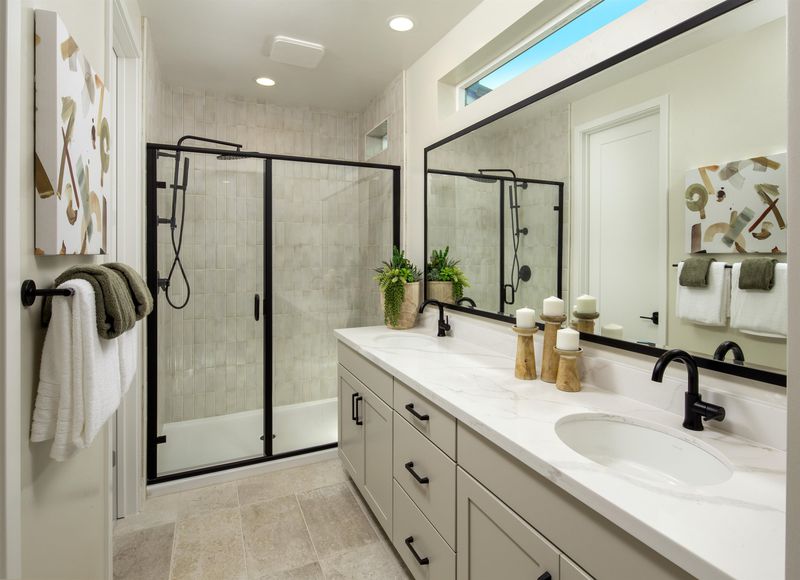 - Shower Over Tub, Solid Surface, Tile, Double Vanity