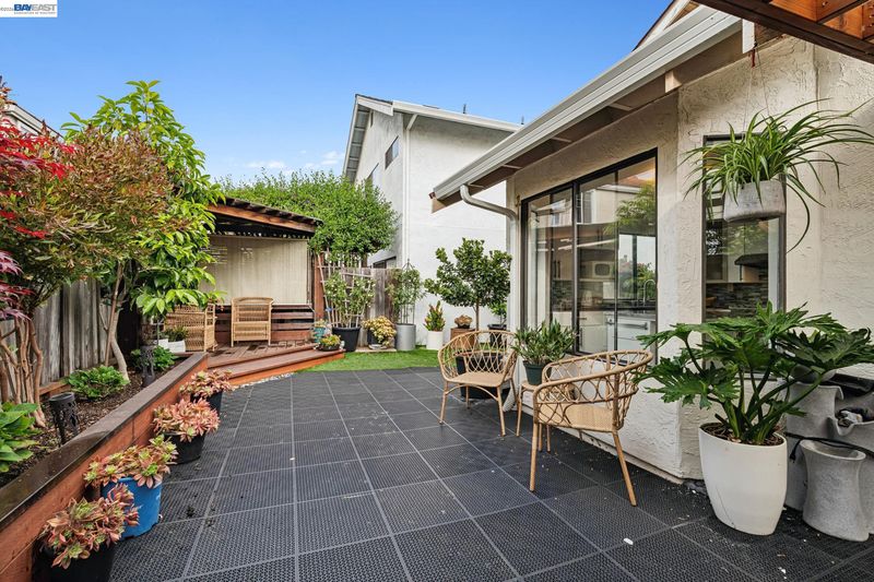Step into this stylish 4 bedroom, 3 bath home with vaulted ceilings in Heritage/Bay Farm. Full bedroom & bath on main level. Chic updated kitchen with Quartz counters, amply cabinetry, custom tile backsplash and stainless steel appliances. Vaulted ceilings in living room with a fireplace. Dining area located off of the kitchen. All updated baths. Primary bedroom with a private bath, vaulted ceiling and a walk-in closet. Private serene mini oasis backyard with pergola and mature greeneries. Attached two car- garage. Great location close to guest parking.No rear neighbors. Two parks located in the development. Close to top perfoming schools, Golf public park, walking/bike paths, transportation, Golf and shopping center.