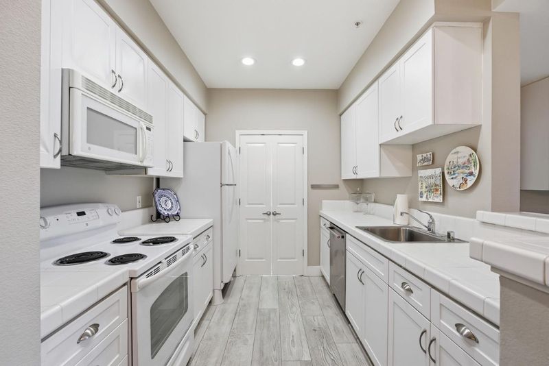 Luxury Living at Woodland Creek. This beautiful 1 bed 1 bath Condo offers a spacious open floor plan of 821 sqft of living space with great amenities. Conveniently located on the 1st floor of Building 3, this Condo features upgraded vinyl flooring throughout, upgraded LED recessed lighting, upgraded dining room light fixtures, tile countertops, dishwasher, built-in/oven range combo, microwave, in-unit stackable washer/dryer in pantry room, Nest Thermostat with A/C, a large walk-in closet, and a balcony. The condo also comes with 2 parking permits: 1 assigned space in the secure, underground parking garage with elevator access, and 1 unassigned parking space in the common parking area. Amenities include: Clubhouse, Fitness Center, Swimming Pool and Hot Tub. Within minutes: Embarcadero Shopping Plaza, 101 Freeway, Downtown Palo Alto, Stanford University, Stanford Shopping Center and major Tech companies. Pets are allowed.