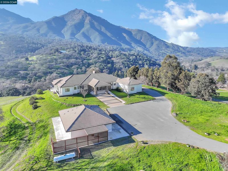 A rare offering with 2 remodeled homes, sweeping acreage, & one of the most captivating settings. Gated 4.84-acre hilltop estate with over 6,100 sq ft of combined living space and panoramic views. Crafted for those who seek elegance & tranquility. Main home features 4 bedrooms, + office, & 4.5 baths across approximately 5,104 sq ft. Highlights include high ceilings, extensive windows, hardwood floors, & a spacious living room with fireplace. The updated kitchen offers a large center island, premium appliances, abundant storage, & easy access to outdoor patios. The primary suite includes a sitting area, deck access, 2 walk-in closets, an ensuite bathroom with soaking tub positioned to capture serene views of Mt. Diablo, dual vanities, & a walk-in shower. A junior primary with large shower, walk-in closet, & private deck. The detached in-law residence includes 3 bedrooms, 2 bathrooms, laundry hookups, & separate PG&E meter, offering excellent flexibility. Outdoor living features expansive patios & views