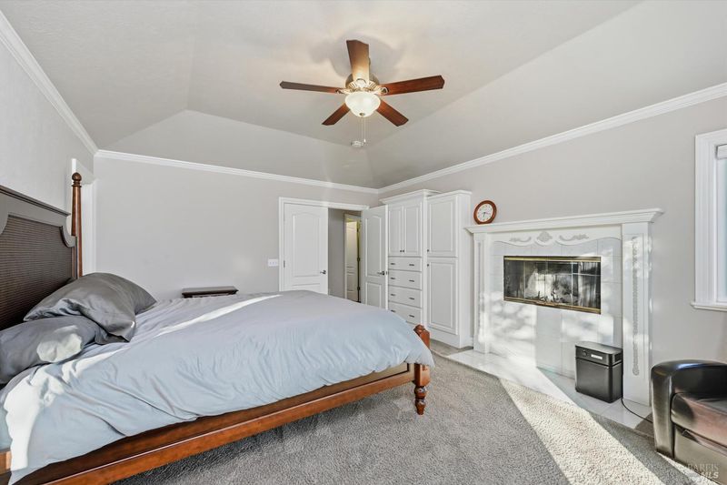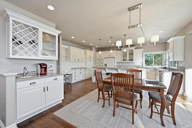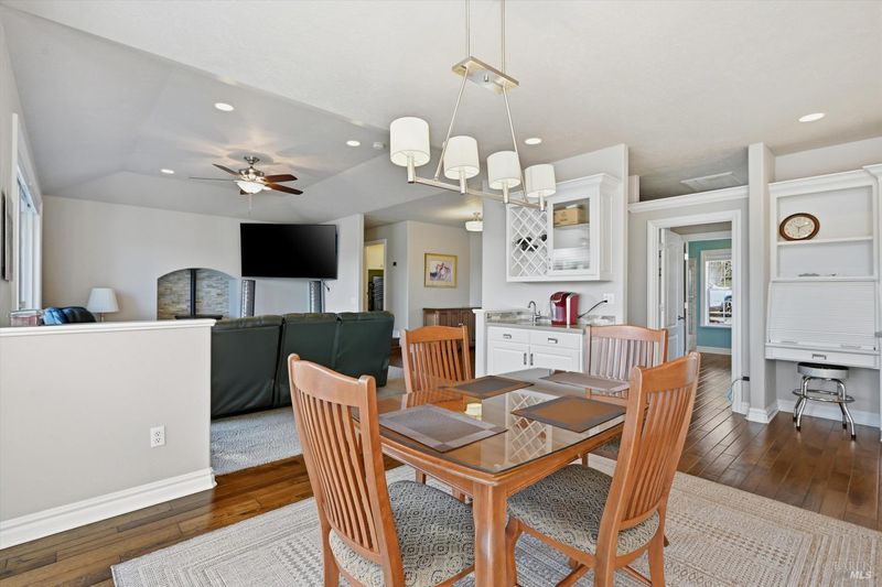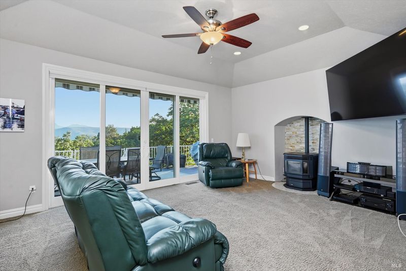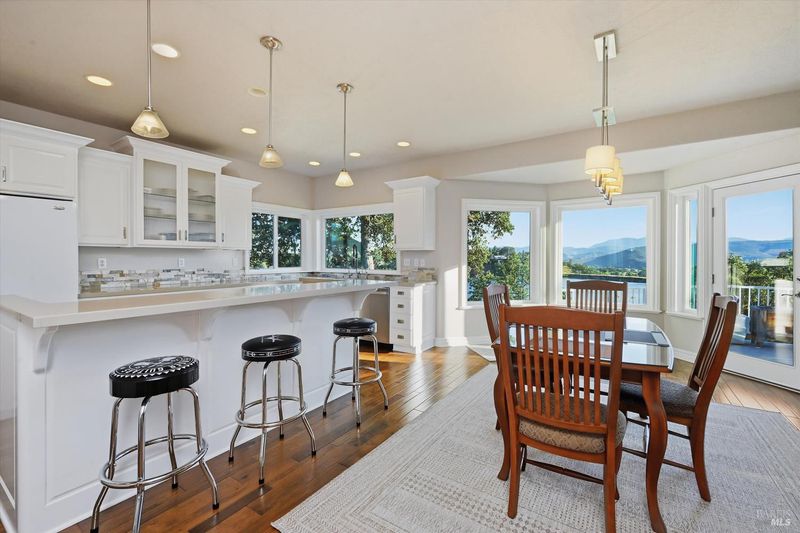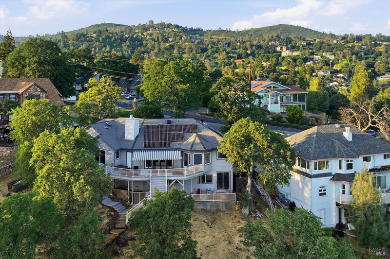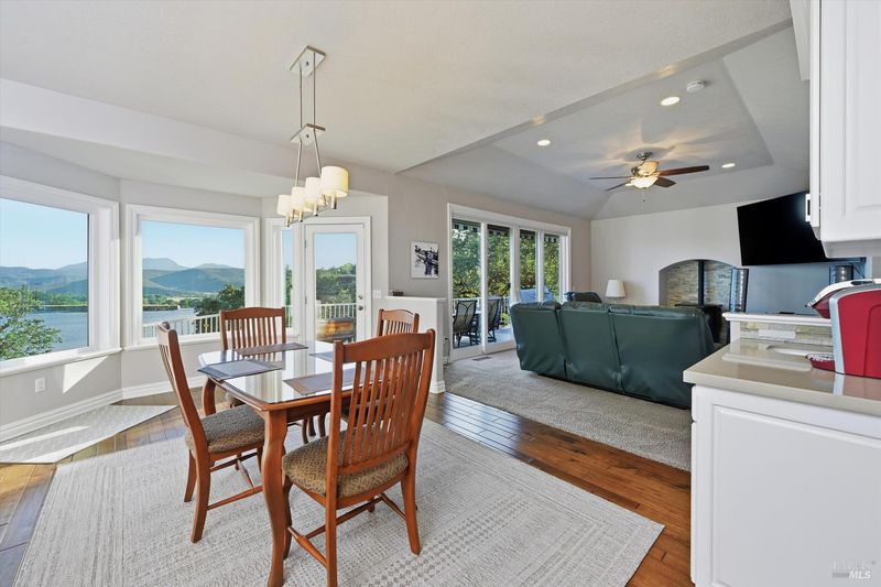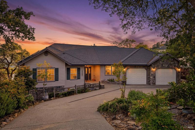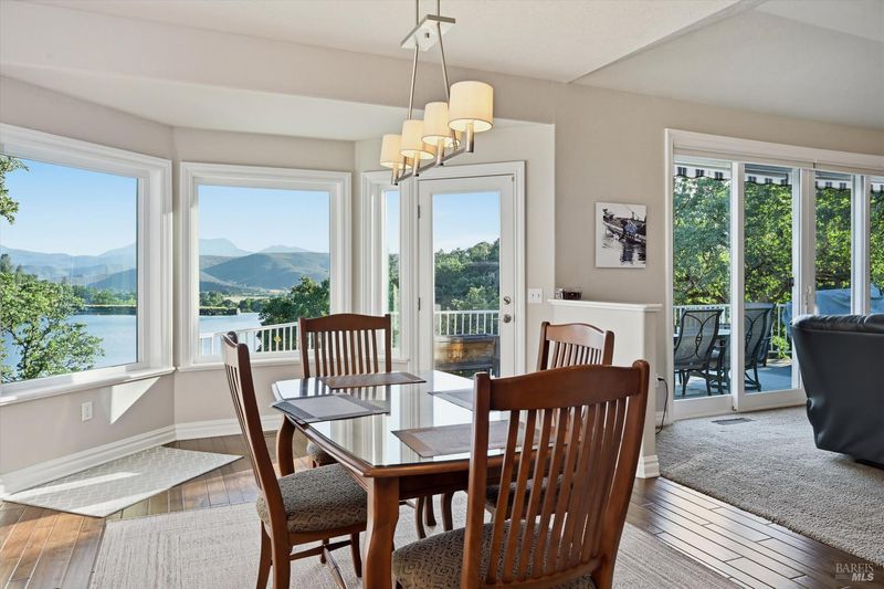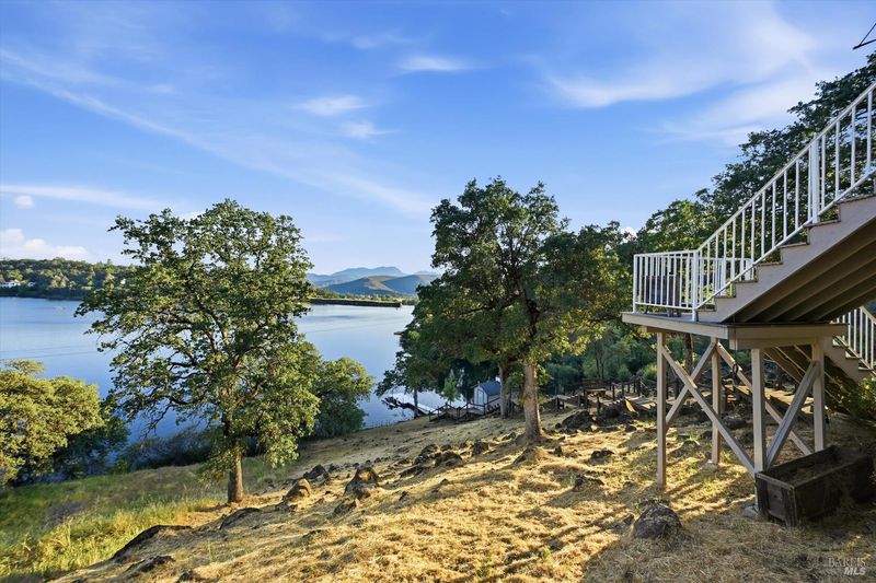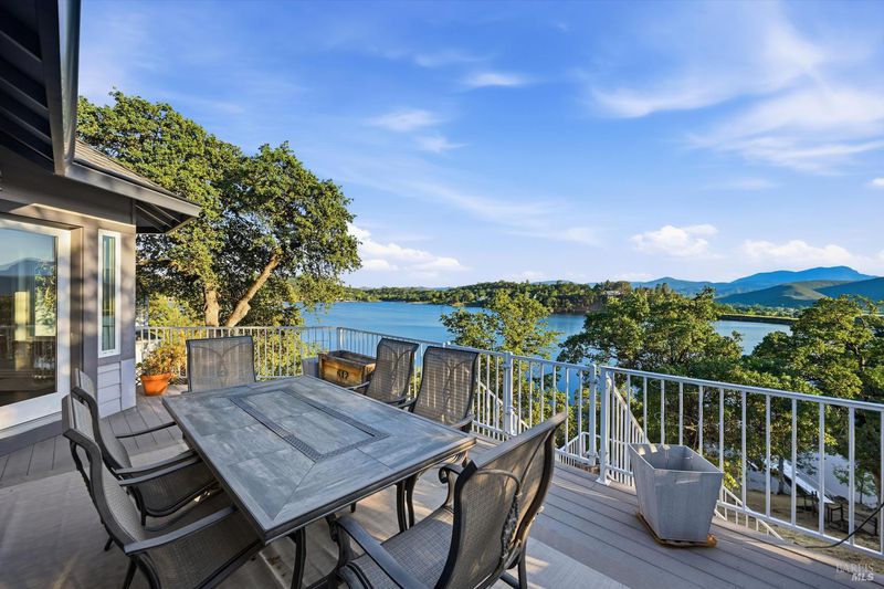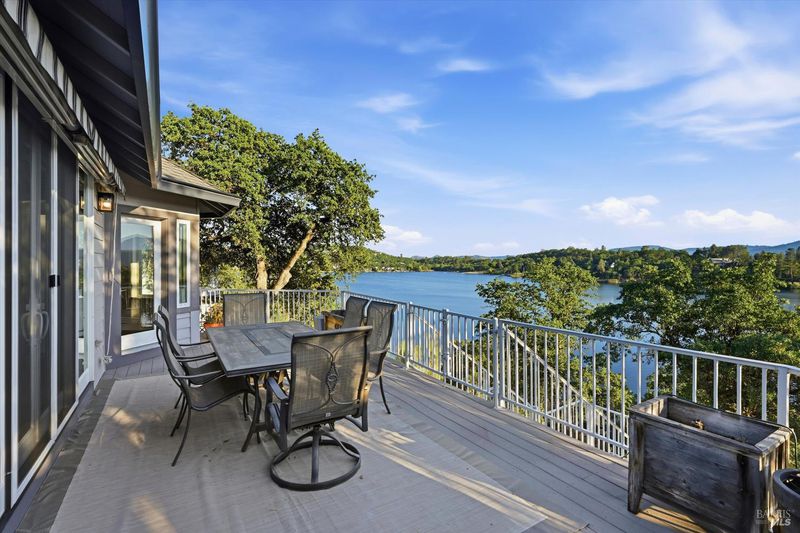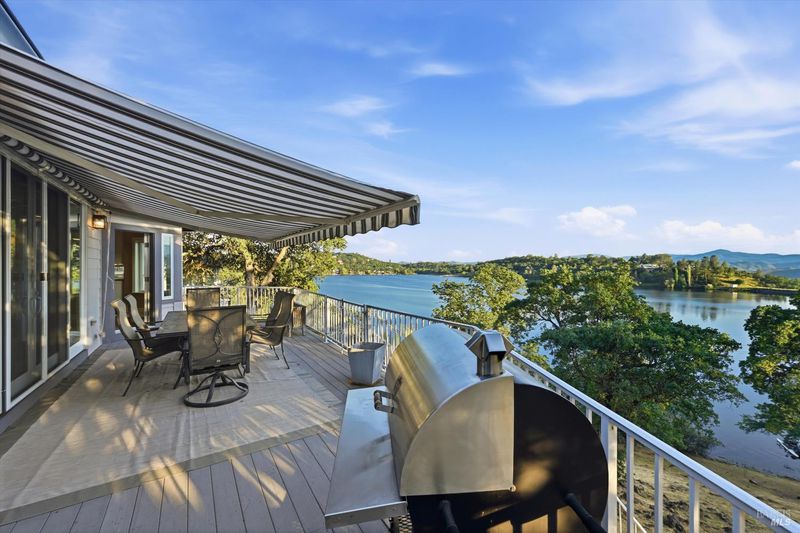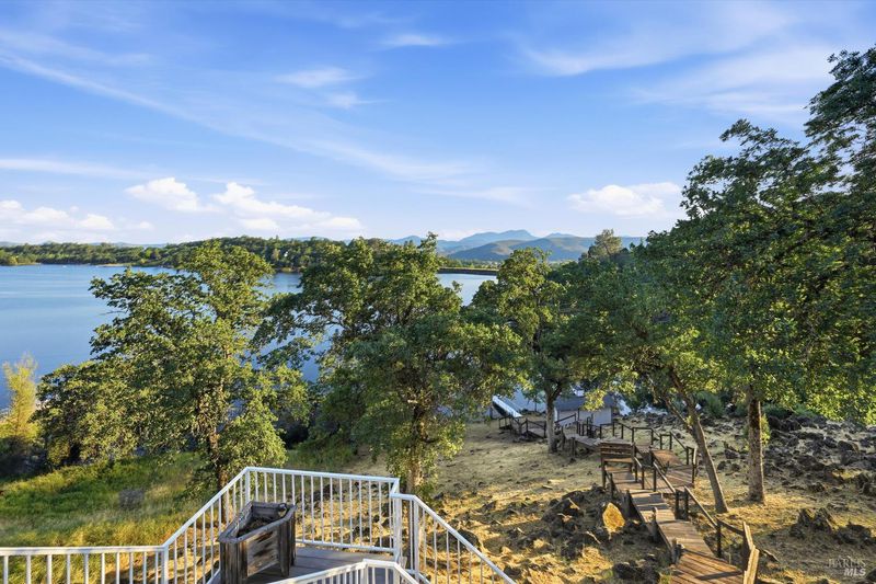 LAKEFRONT! Set along 170 feet of prime shoreline in Hidden Valley Lake, this beautifully updated 3 bedroom, 3 bathroom, 2,557 SF custom home offers a seamless blend of comfort, craftsmanship, and breathtaking views of Hidden Valley Lake with Mount St. Helena just beyond. Step through the inviting foyer, where natural light pours in through a dramatic wall of windows, immediately drawing your eye to the water. The main living space feels bright and open, designed to capture the views from nearly every angle. The gourmet kitchen is a true showpiece, featuring handcrafted cabinetry, quartz countertops, a newer stovetop range, matching appliances, recessed lighting, and two spacious pantriesperfect for both everyday living and entertaining. Just off the kitchen, the dining room offers a stylish wet bar with wine storage, creating an ideal setting for hosting. The primary suite is a private retreat, accessed through elegant French doors and highlighted by crown molding, a tray ceiling, custom built-ins, a cozy gas fireplace, and direct access to the deck. The en-suite bath offers a spa-like experience with tile countertops, a brick backsplash, and a Jacuzzi tub positioned to take in peaceful lake views. Downstairs, the versatile lower-level bonus room includes its own bathroom, wet bar, and private entranceperfect for guests, extended stays, or potential in-law accommodations. Additional features include a spacious two-car garage with a recirculating hot water system with bonus room, owned solar for energy efficiency, and an expanded driveway providing ample additional parking. Outdoor living is just as impressive, with expansive TimberTech-style decking ideal for relaxing or entertaining while enjoying sunsets over the spillway. A gently winding path leads you to your plumbed boathouse and private dockready for kayaking, boating, and lakeside living at its finest.