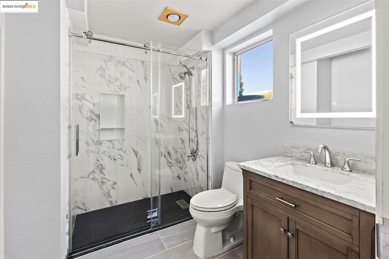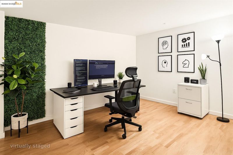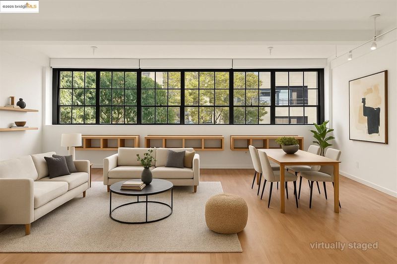 Discover refined urban living in this beautifully updated live/work loft style condo located at the Oliver Lofts in the heart of Emeryville. Sophisticated and modern, this spacious loft showcases an open floor plan with high ceilings, freshly painted interiors, and refinished hardwood floors that highlight its industrial character. The kitchen has been thoughtfully updated with a new GE electric glass-top range and oven, sleek chrome pull-down sprayer faucet, and connected ice maker. The large office space can serve as a 2nd bedroom, den, or exercise room. Upstairs features a full bath, spacious bedroom and in-unit laundry. The newly remodeled bathroom boasts a new Castico composite stone shower with frameless Coraline XL sliding door, an elegant Allen+Roth marble-top vanity, and an LED fog-free medicine cabinet. The bedroom offers plush comfort with premium short-pile carpet and top-quality padding and Bali Blinds. Additional upgrades include a new return air grill with easy-access filter, new GE washer and dryer, and stylish finishes throughout. Perfectly positioned near shopping, dining, and major commuter routes, this modern Emeryville loft blends industrial charm with contemporary elegance - ideal for today’s creative lifestyle. OPEN HOUSE: SAT, NOV 8 & SUN, NOV 9 | 1-4PM