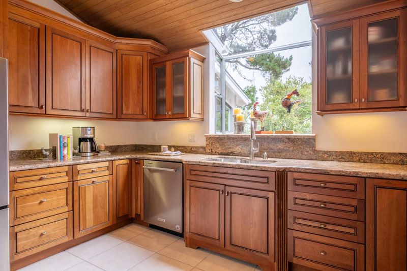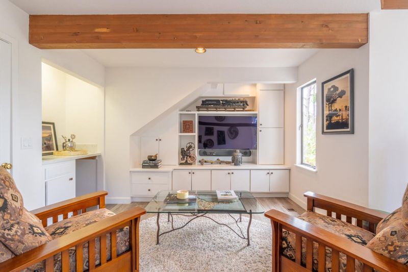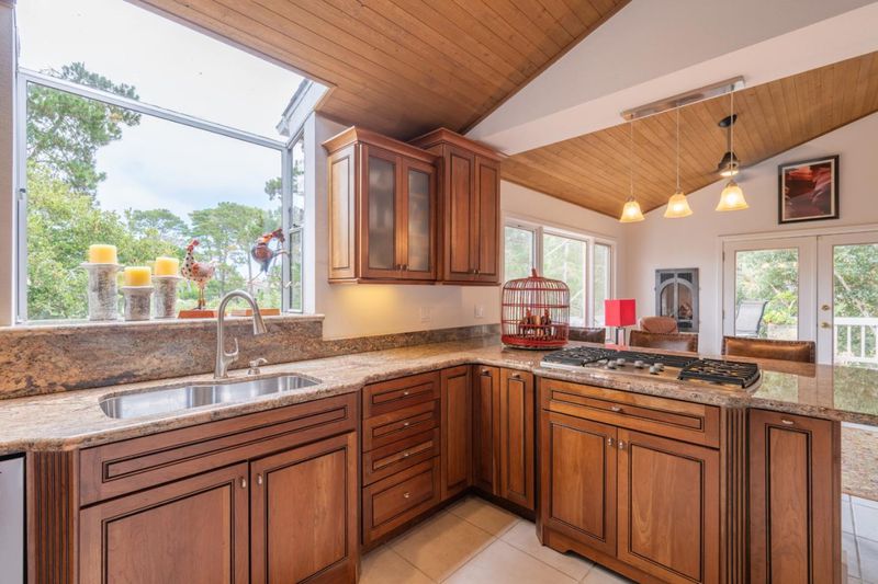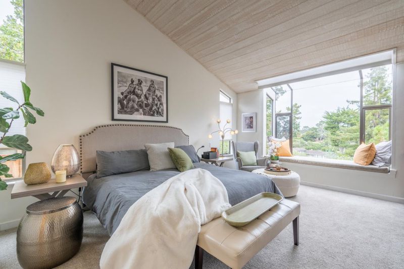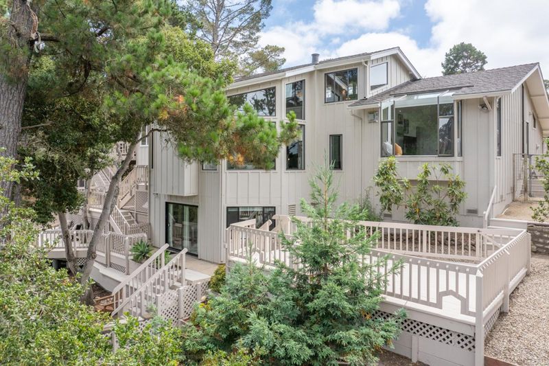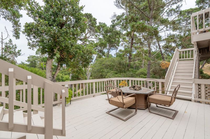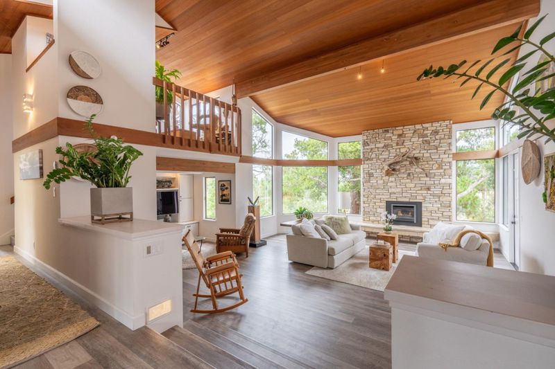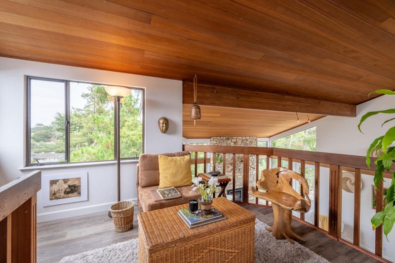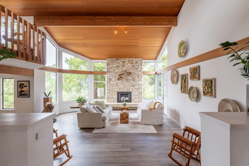 Tucked in Monterey's coveted Deer Flats Park sunbelt, this inviting home offers a rare blend of elegance, tranquility, and connection to nature. Morning light filters through soaring windows in the dramatic living room, where rich wood accents and a striking fireplace frame forest views. The serene primary suite, with its cozy window seat, fireplace, dual closets, and private spa patio, is a perfect place to unwind and relax. Two additional bedrooms and a full bath provide privacy and comfort for family or guests, while the gourmet kitchen flows easily to the adjacent den and office nook. A versatile artist loft with sink offers an inspiring space to create and dream. Thoughtful decks invite gatherings under the trees, and a spacious two-car garage adds convenience to this peaceful, nature-inspired retreat.