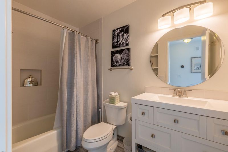 - Bidet, Double Sinks, Full on Ground Floor, Half on Ground Floor, Primary - Stall Shower(s), Shower over Tub - 1, Skylight, Solid Surface, Updated Bath