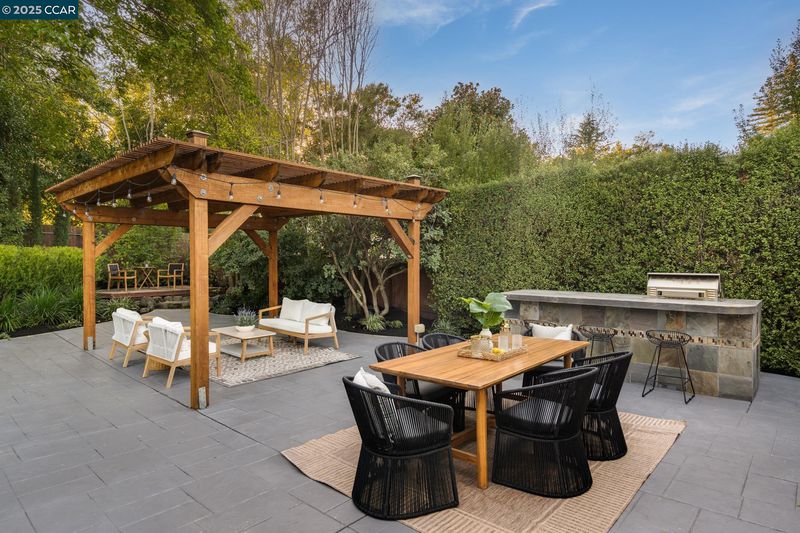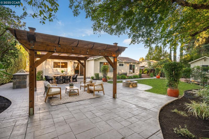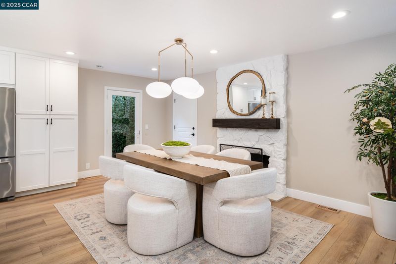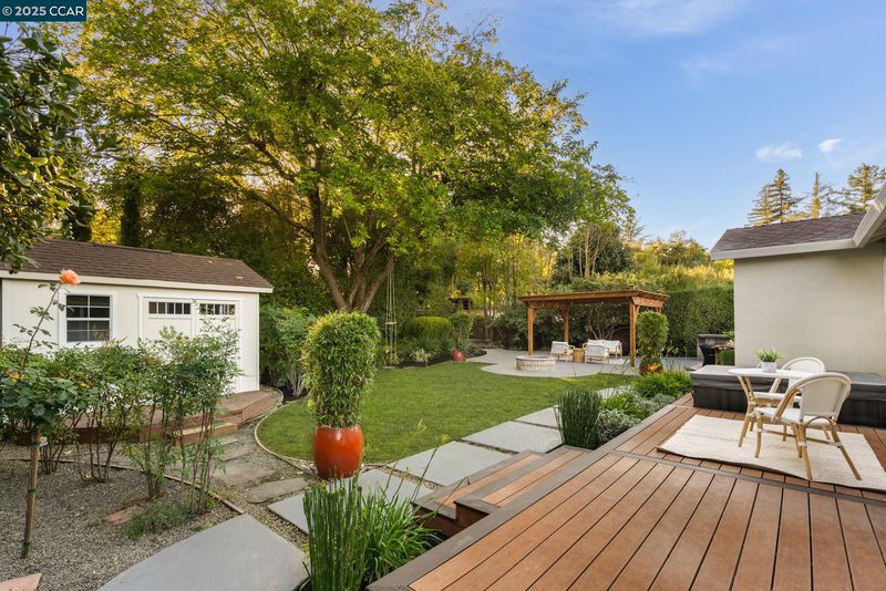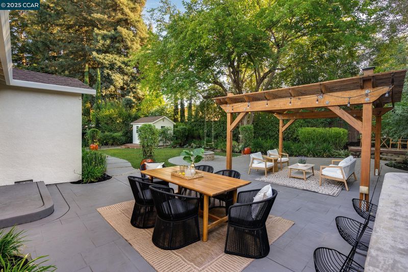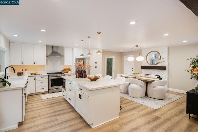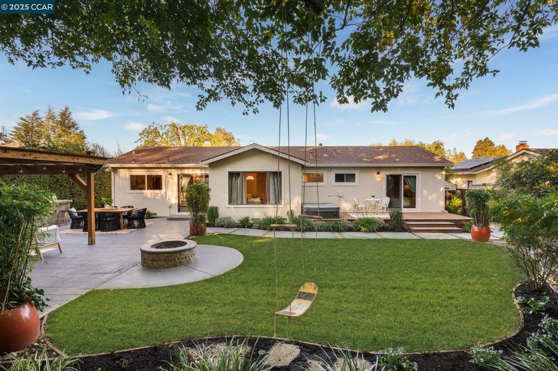 Welcome to this turn-key single level home nestled in the highly desirable Twin Creeks neighborhood of San Ramon. Lush, mature landscaping surrounds the property, creating a serene sense of privacy and stunning curb appeal complemented by the freshly painted exterior. Inside, the open-concept layout features light, updated flooring and new designer lighting. The beautifully remodeled kitchen is the heart of the home, showcasing SS appliances, abundant cabinetry, and an oversized island with breakfast bar seating, seamlessly flowing into the formal dining area anchored by a cozy fireplace and the family room. The primary suite offers direct outdoor access to the hot tub, a spacious walk-in closet, and a stylishly remodeled ensuite bath. Two addl bedrooms are shared by a beautifully updated hallway bath. Step outside to a resort-style backyard designed for year-round entertaining. A pergola, built-in BBQ, fire pit and multiple lounge/dining areas set the stage for gatherings, while the lush lawn and mature trees create a private & inviting retreat. A versatile detached shed offers flexible use as a yoga studio, art studio, or home office, enhancing the functionality of the outdoor space. Conveniently located near parks, recreation, shops & within the top rated SRV school district.
