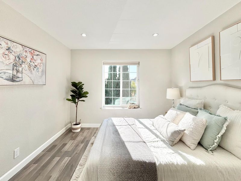 Rarely available beautifully updated single-family in highly sought-after Ardenwood community. Built in 1988, this thoughtfully designed 4BD/2.5BA end-unit offers a larger lot and no shared walls for added privacy. Bright living room with soaring vaulted ceiling and great natural lights. Open-concept kitchen features quartz countertops,soft-close cabinetry, quality appliances, and abundant storage, flowing seamlessly into the dining area and backyard. Spacious primary bedroom with vaulted ceiling overlooks the customized "Rose Garden". Primary bath includes double-sink floating vanity, luxuary soaking tub, and separate shower. Step outside to your own curated backyard oasisa customized "Rose Garden" with an irrigation system, water fountain feature, flower beds, and solar lighting. With a wide variety of roses throughout the yard, this space is perfect for relaxation. Updated flooring, dual-pane windows/doors, newer garage door, newer water heater, and RO water filter. Side-by-side 2-car garage with driveway parking and ample guest parking.Top-rated schools with TEST SCORE 10 (buyer to verify): Forest Park Elementary, Thornton Middle, American High. Minutes to Ardenwood Historic Farm, Hwy 84 (Dumbarton Bridge), and I-880. Easy commute to major companies-Meta/Google/Tesla/Lucid!