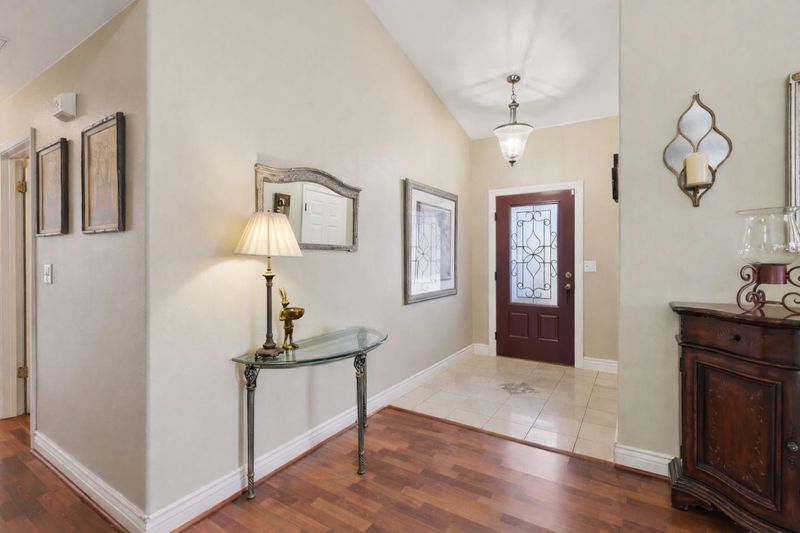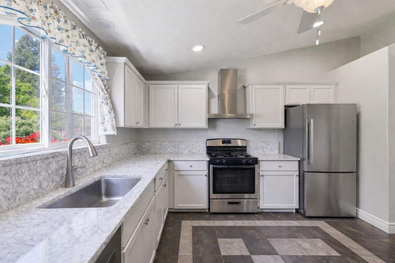 Welcome to this beautifully maintained home in West Gilroy, ideally situated near the stunning, year-round green foothills in the highly sought after Mesa Ridge community. Known for its pride of ownership and well-kept surroundings, this neighborhood offers the perfect blend of tranquility and convenience. Step inside to a light-filled, open-concept layout with soaring ceilings that create a bright and inviting atmosphere. Two sliding glass doors seamlessly connect the indoor living space to a beautifully landscaped backyard perfect for entertaining or simply relaxing. The kitchen is thoughtfully designed with a gas stove, pantry, and an easy flow into the main living areas, making it ideal for both everyday living and hosting. This home features three spacious bedrooms, including a private primary suite complete with a walk-in closet, dual sinks, a large soaking tub, separate shower, and direct access to the backyard. Additional highlights include a dedicated laundry room with ample storage, solar, a finished two-car garage with EV charging station, and a detached storage structure. Conveniently located near parks, schools, Gavilan College, shopping, and major commute routes, this home offers comfort, style, and an exceptional location.