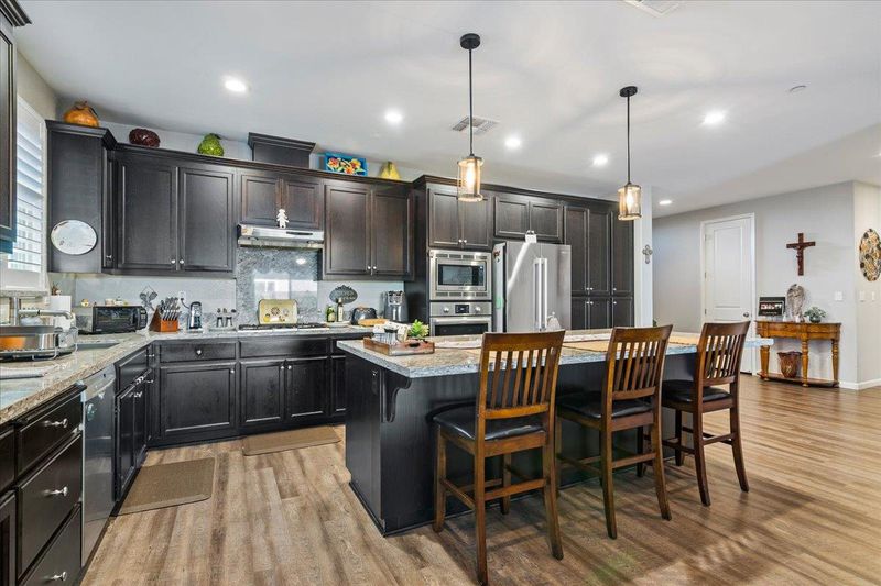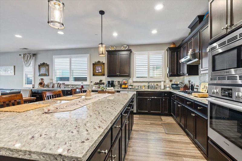 - Dishwasher, Gas Range, Microwave, Breakfast Bar, Breakfast Nook, Stone Counters, Eat-in Kitchen, Gas Range/Cooktop, Kitchen Island, Updated Kitchen