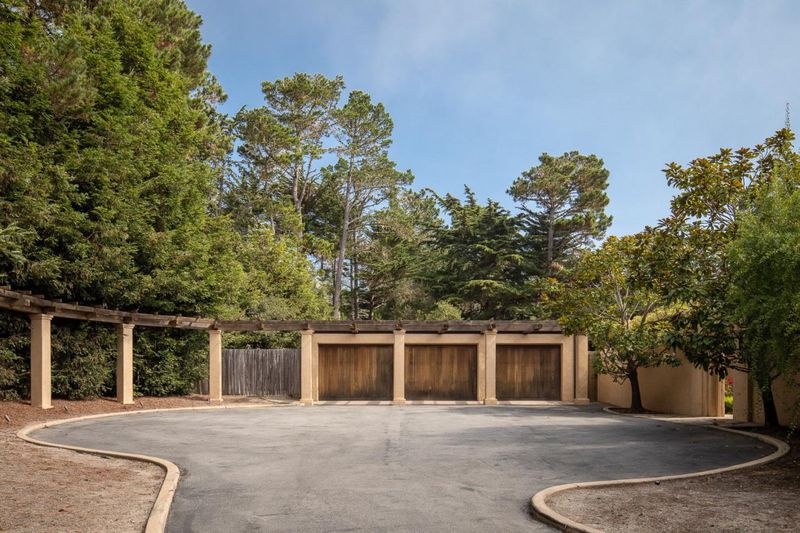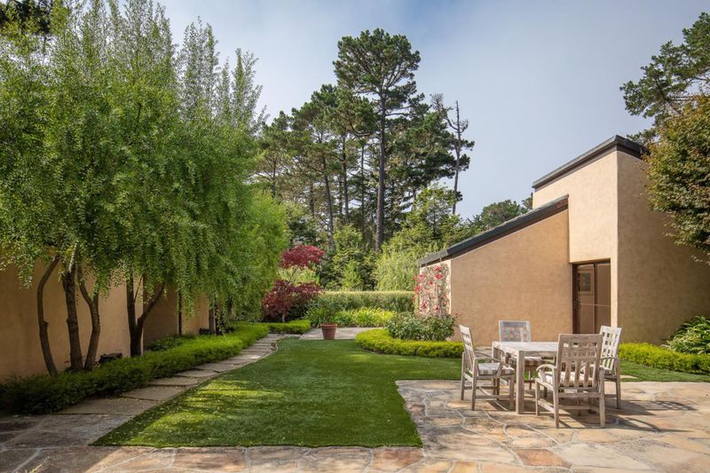 Hidden within a peaceful enclave of mature redwoods and pines, this sleek and sophisticated Pebble Beach home is a refined architectural statement by Michael Bolton and architect Will Shaw. Dramatic in presence yet serene in setting, the home is centrally located in the desirable Estate Area sun belt, just a short drive from world-renowned golf, Carmel-by-the-Sea, and the white sands of Carmel Beach. Impeccably maintained and thoughtfully updated, the interiors showcase soaring ceilings, luminous open spaces, four fireplaces, wide-plank walnut flooring, and French doors that open effortlessly to multiple private patios. Named Maison de Jardins, the gated property is distinguished by its beautifully designed gardens and tranquil outdoor spaces. A private courtyard guest house with a bedroom, bath, sitting area, and fireplace, adds a layer of understated luxury and flexibility to this exceptional opportunity.