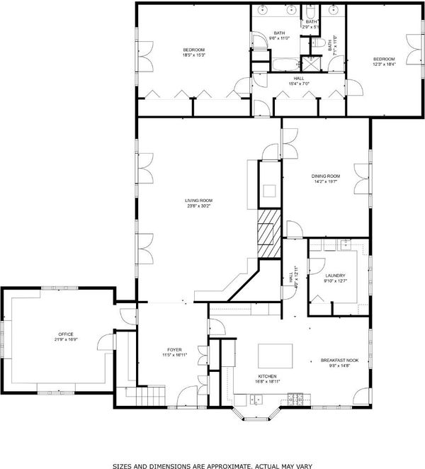- Double Sinks, Stall Shower, Shower and Tub, Tile, Full on Ground Floor, Stall Shower - 2+
