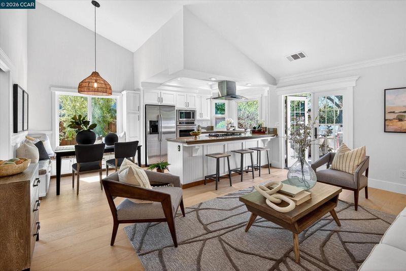 Single-level cul-de-sac home shines w/floor-to-ceiling updates. Steps from Danville’s Sycamore Valley 700-acre open sp preserve, walking trails. Northridge comm pool, tennis cts, clubhouse. 2037 +/- light-filled SF. 4 bds. 2 bths. Soaring ceilings, detailed millwork, crown molding, wainscot. Andersen drs & wndws, fresh int paint, eng. hdwood flrs, recessed & updated lights. Double frnt dr entry. Formal living rm w/gas frpl. Formal dining rm. Chef’s kitchen. SS appls. GE 5-burner gas cktp. GE French dr refrigerator. Bosch dw. Built-in oven, microwave. Granite counters. Peninsula island/brkfast br. New & freshly painted cabinetry. SS sink. Casual dining w/built-in banquette seating. Adjacent family rm w/divided French drs to bkyd. Primary suite has vaulted ceiling, slider to bkyd, dual reach-in closets. En suite w/dual-sink vanity, coffered ceiling, updated fixtures, tub/shwr combo. Updated 2nd bthrm w/dual-sink vanity, tub/shwr combo. Inviting ultra-pvt bkyd w/no rear neighbors / hillside views. WOW!!