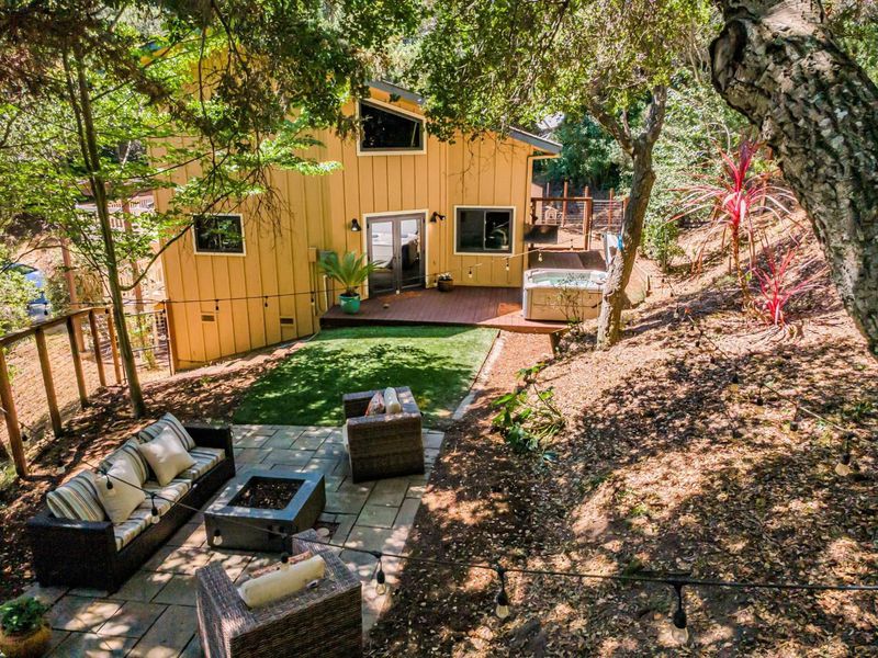 Idyllic country home & studio unit on a private sunny hillside surrounded by nature. Soaring open beam ceilings & abundant windows stream in plenty of natural light. Tile & wood floors with carpet in 2 bedrooms. The main floor has a bedroom & updated bathroom and laundry closet. Upstairs are 2 bedrooms & an updated bathroom. The kitchen features freshly painted cabinets, tile counters and stainless steel appliances. Ample dining area to host dinner parties & game night! The cozy wood stove in the living room provides a warm place to read, crochet, or sip your favorite tea as you wind down the day. Seamless indoor/outdoor flow from the living room & dining room to the rear yard where you can soak in the hot tub, make s'mores around the gas fire pit & relax in your peaceful hammock. Expansive sun drenched deck has amazing views - ideal for BBQing & entertaining! Beautifully blooming Magnolia trees, Pear & Persimmon trees & Grapes! Garden boxes to grow your favorite veggies. 2 car garage with EV Charger, workbench, and a utility room. Detached studio unit w/ bathroom & small yard/deck/parking is away from main house. Great neighborhood & excellent schools! Easy drive to Freeways & Beaches. Centrally located to Monterey/Carmel & Los Gatos/Bay Area. Fantastic opportunity!