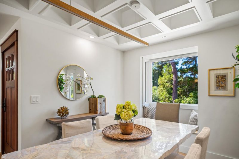 It has it all! This newly constructed 3 bedrooms and 2.5 baths, craftsman style home, is designed by Thomas Bateman Hood. The property is steps from the center of Carmel Village, with views of the water and a long list of amenities, that make this a truly unique property. There is lots of attention to details with coffered and wood ceilings, American white oak wood floors, radiant heating throughout, solar energy system with battery back-up, two Tesla wall charges, lots of built in storage and bonus basement rooms in the oversized garage, outdoor kitchen and the list goes on. Come and experience this well-crafted home.